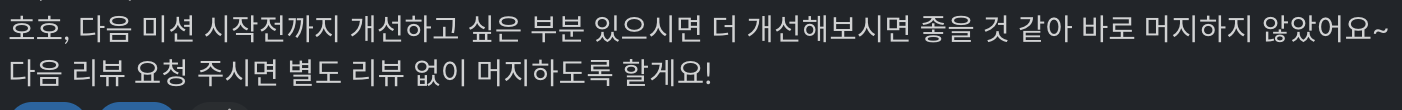 몇 시간을 고민해도 바뀌는 코드가 없고 어떻게 해야 할지 감을 잡지 못했다. 그래서 리뷰어에게 연락했다.