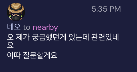 슬랙에 다들 만나는 모습을 많이 봐서 나도 만나야지 하는 마음으로 데일리팀 크루들에게 의사를 물어봤다. 코로나 이슈로 인해 취소될 뻔했지만 케이, 라쿤, 필즈와 카페에서 각자 코딩을 했다. 중간중간 미션에 대한 얘기도 나누고 개발적인 이야기를 많이 나눴다. 토요일마다 게더에서 게각코를 했지만 실제로 만나서 하는것과 차이가 컸다. 직접 보면서 하는 대화가 재밌었고 연예인을 만나는 기분이었다. 확실히 집에서만 개발하다가 밖에서 나와 크루들 만나고 대화하니 리프레시가 되었다. 긍정적인 에너지를 많이 얻고가서 종종 오프라인 모각코를 할 예정이다.