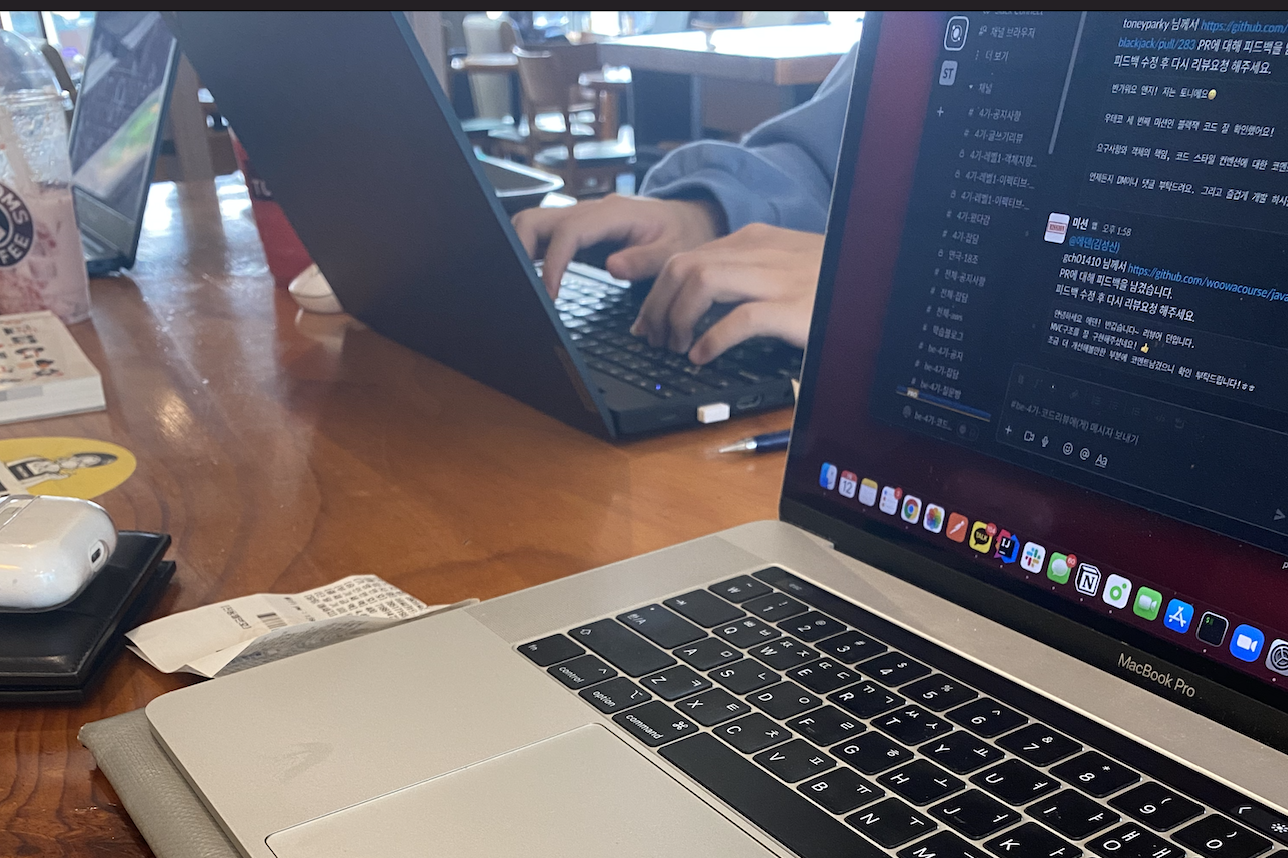 역시나 블랙잭 미션에도 다들 좋은 크루를 만났고 케이는 3인 페어가 되어 좋은 경험을 했다고 전해주었다. 이 정도면 사실 우테코에 참여한 모든 크루가 다 좋다는 뜻 아니겠는가.